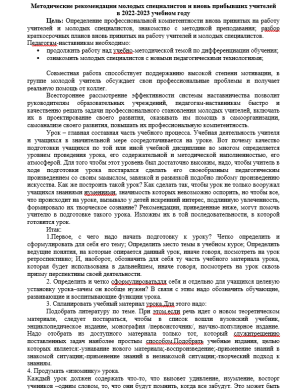 Методические рекомендации молодых специалистов и вновь прибывших учителей в 2022-2023 учебном году