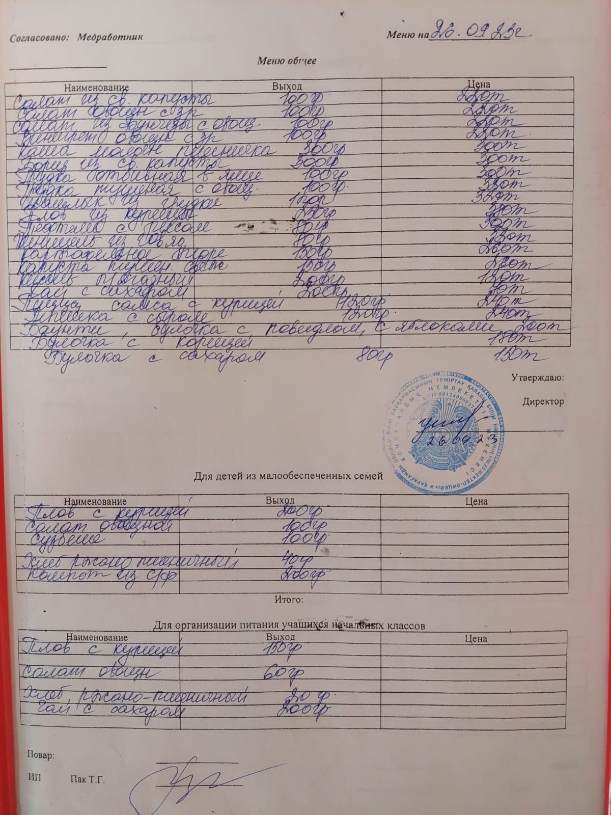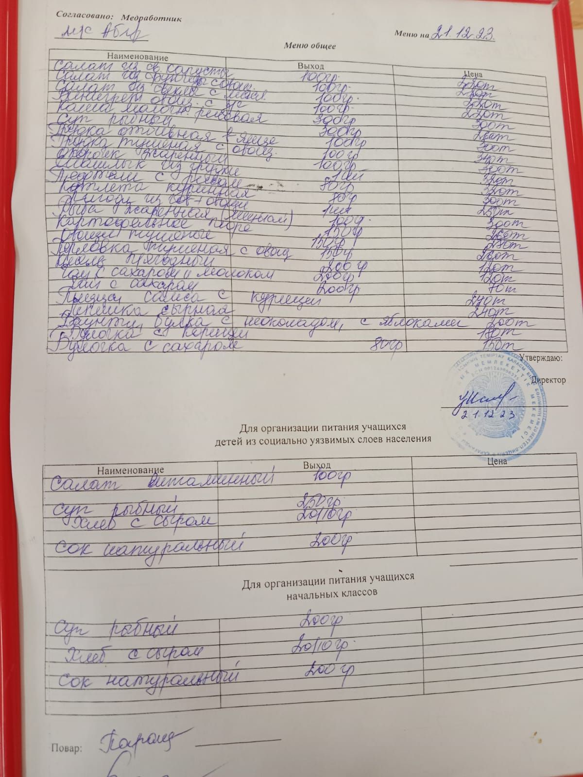 Меню для 1-4 класса на зиму-весну 2024-2025 г
