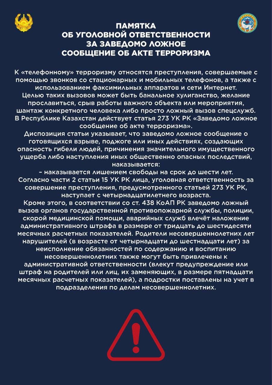 Памятка об уголовной ответственности за заведомо ложное сообщение об акте терроризма