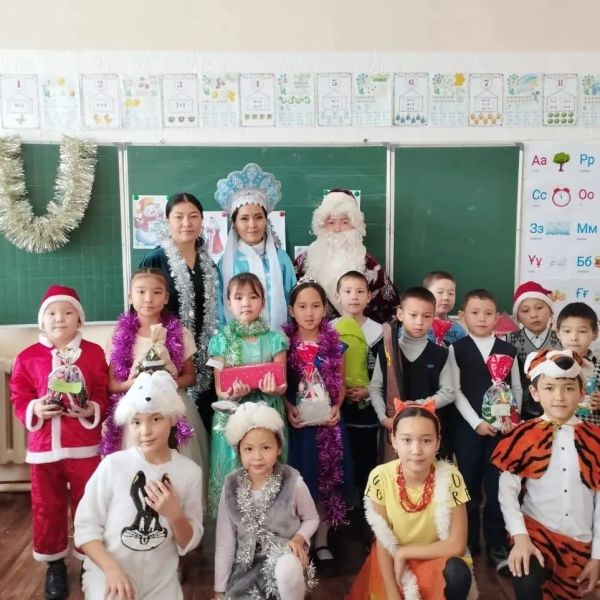 Учащиеся КГУ " ОШ І 28" ОО г.Темиртау получили новогодние подарки от партии "Аманат".