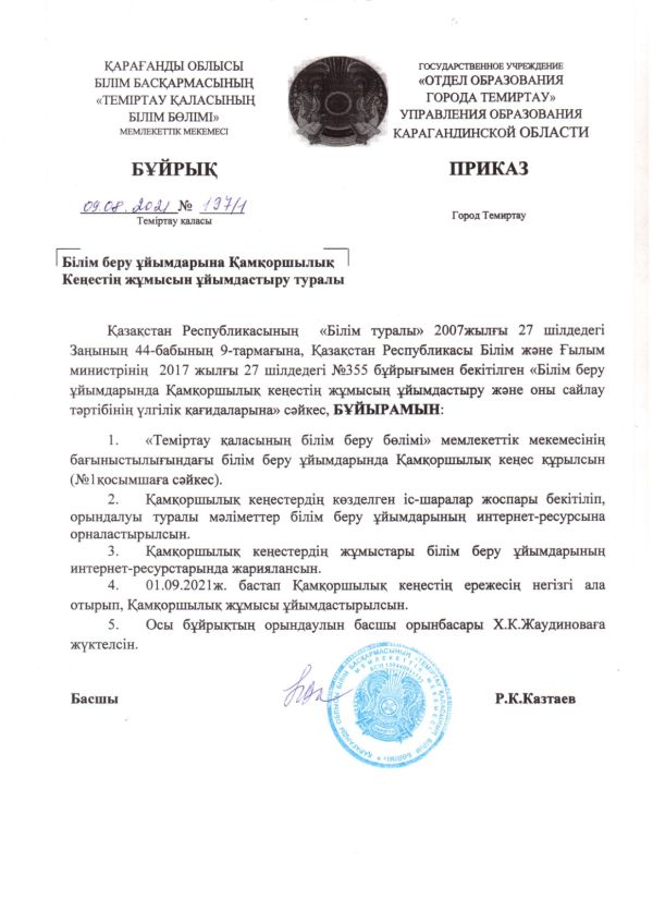 Администрация КГУ «Школа-лицей имени Бауыржана Момышулы» ОО г. Темиртау УОКО объявляет о формировании Попечительского совета и приеме предложений по его составу для оказания содейс…