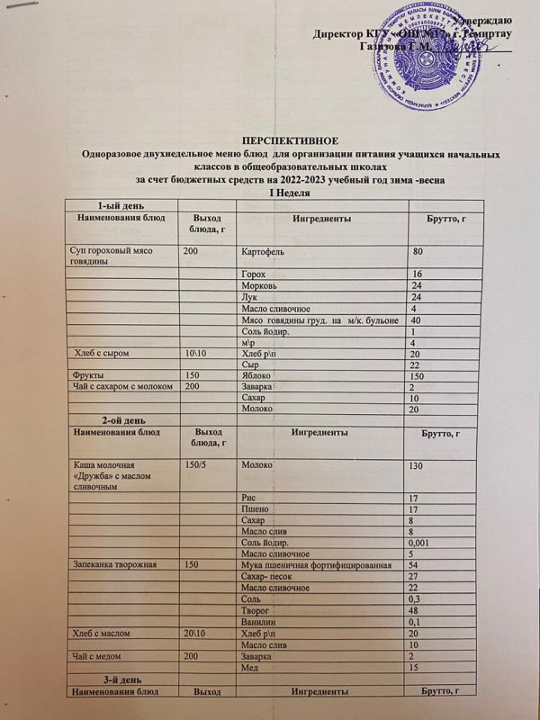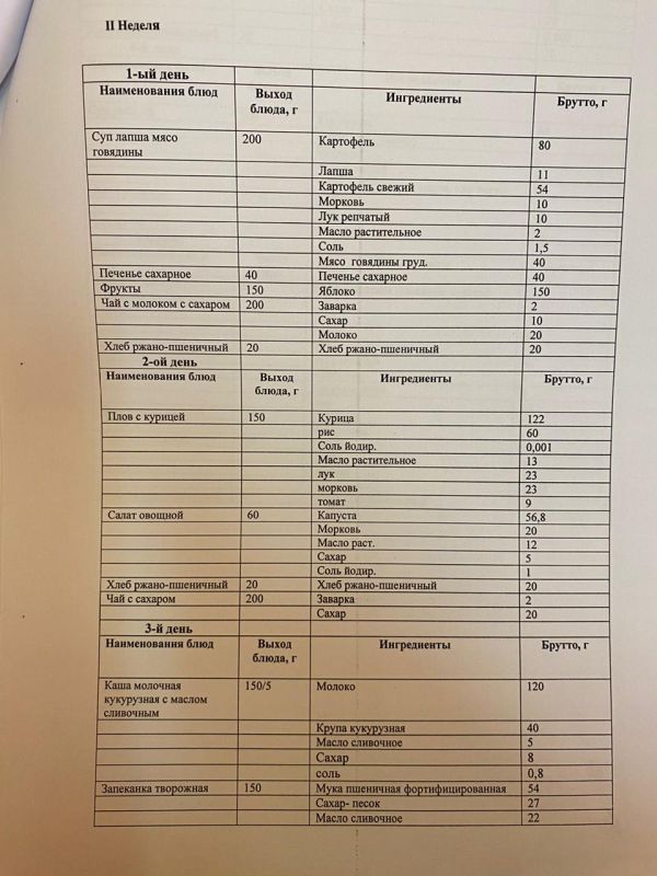Преспективное одноразовое двухнедельное меню