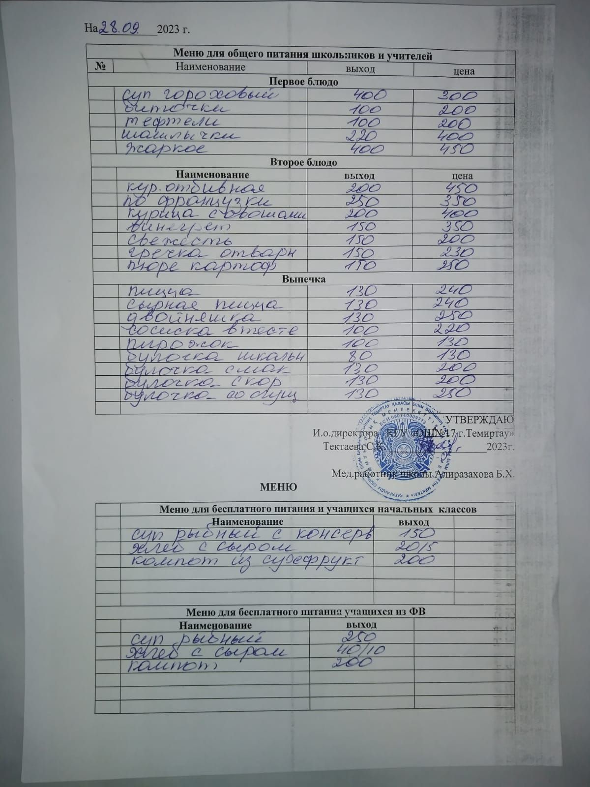 Меню на 28 сентября