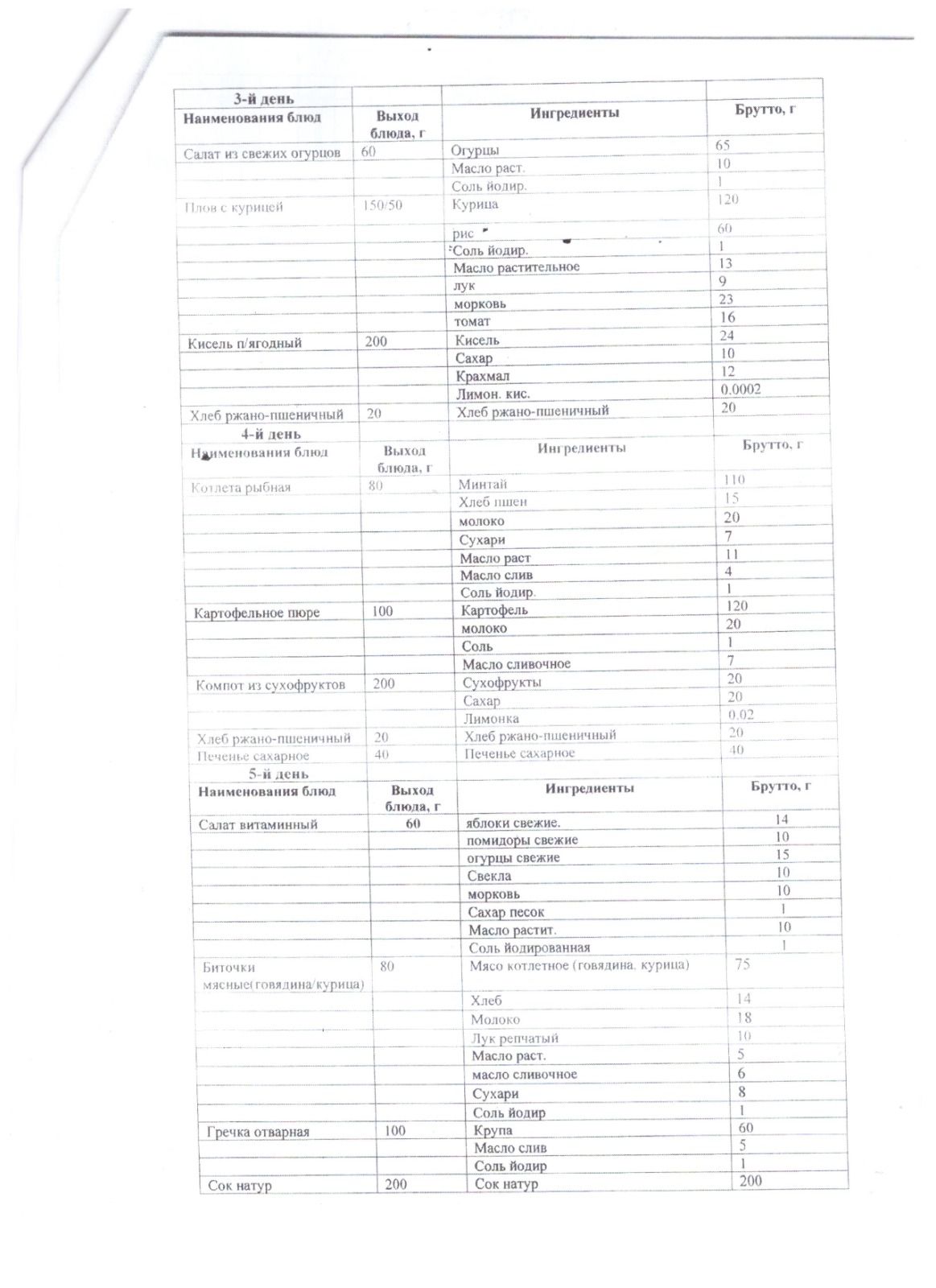 меню 5 - 11 сыныптары бойынша