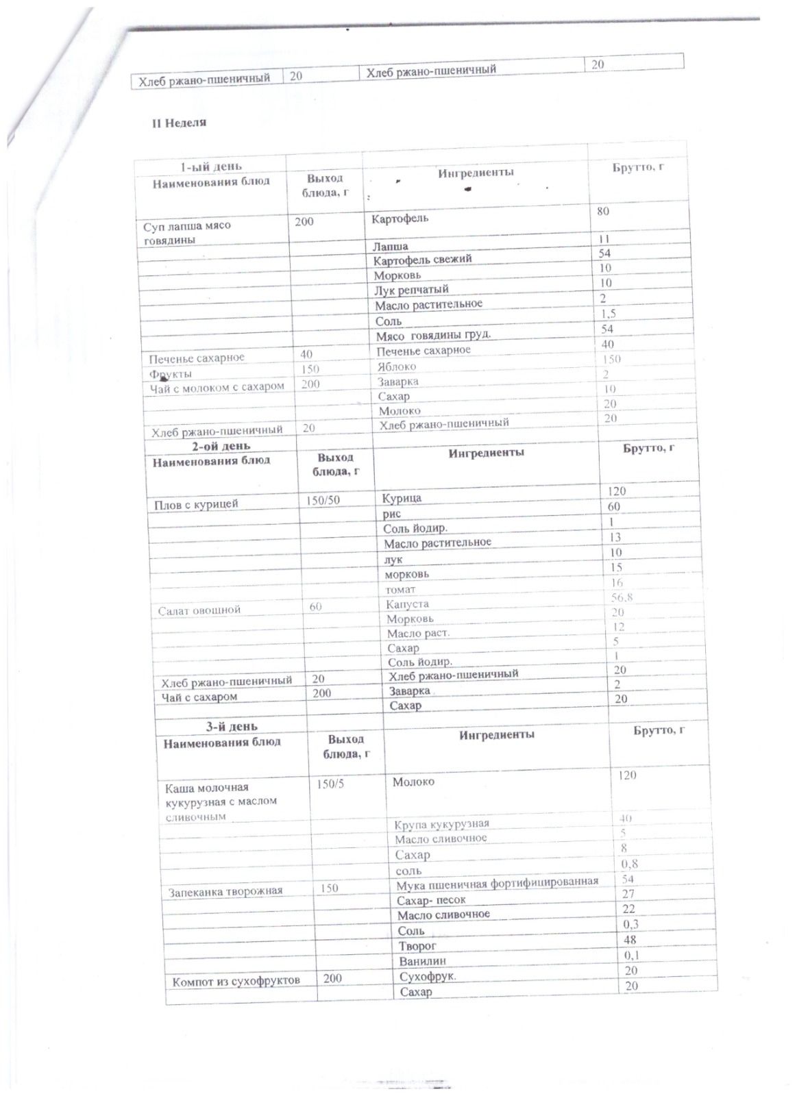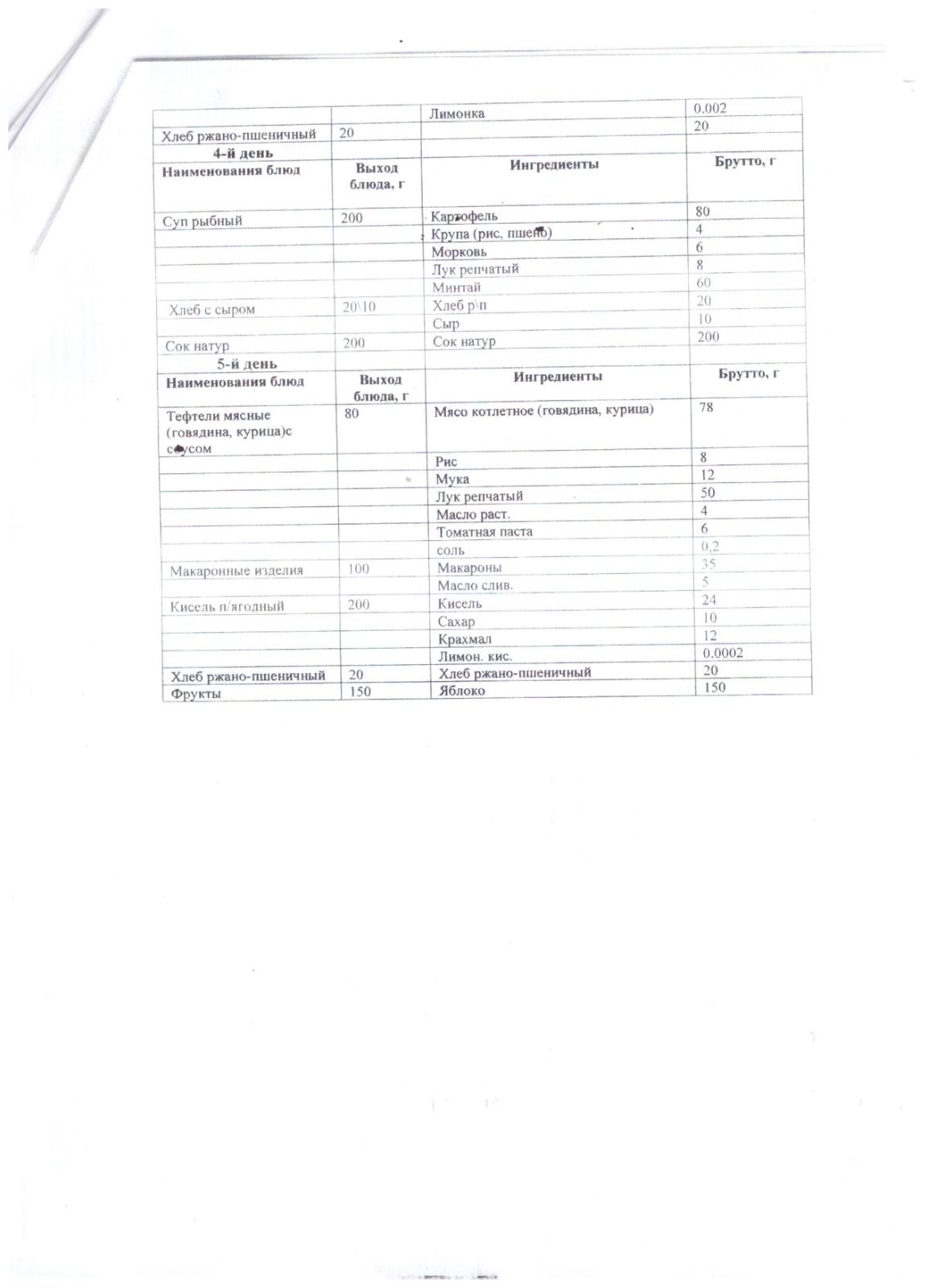 Меню бастауыш сыныптарына