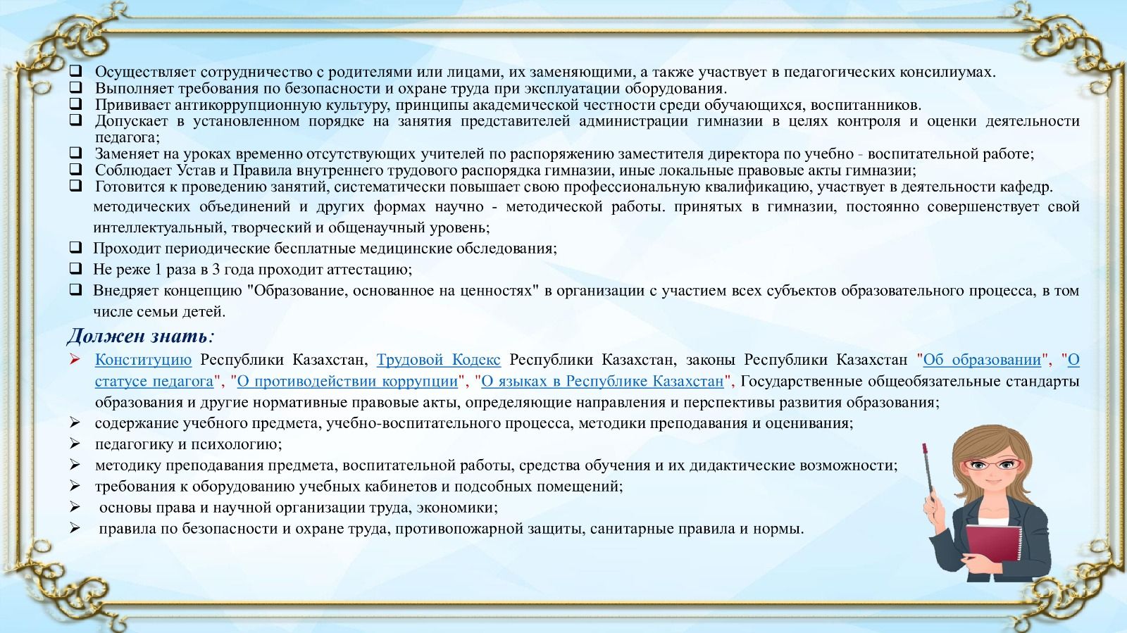 Қарағанды облысы білім басқармасының Теміртау қаласы білім бөлімінің «Қыздар гимназиясы» КММ 01.08.-09.08.2023 ж. педагог кадрлардың бос орындарына конкурс жариялайды