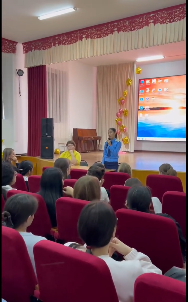2024 жылғы 9 қазанда ҚММ «Қыздар гимназиясында» 7-11 сынып оқушылары Теміртау қаласы прокуратурасы бөлімінің аға прокуроры Бекенова А.Е. мен кездесті.