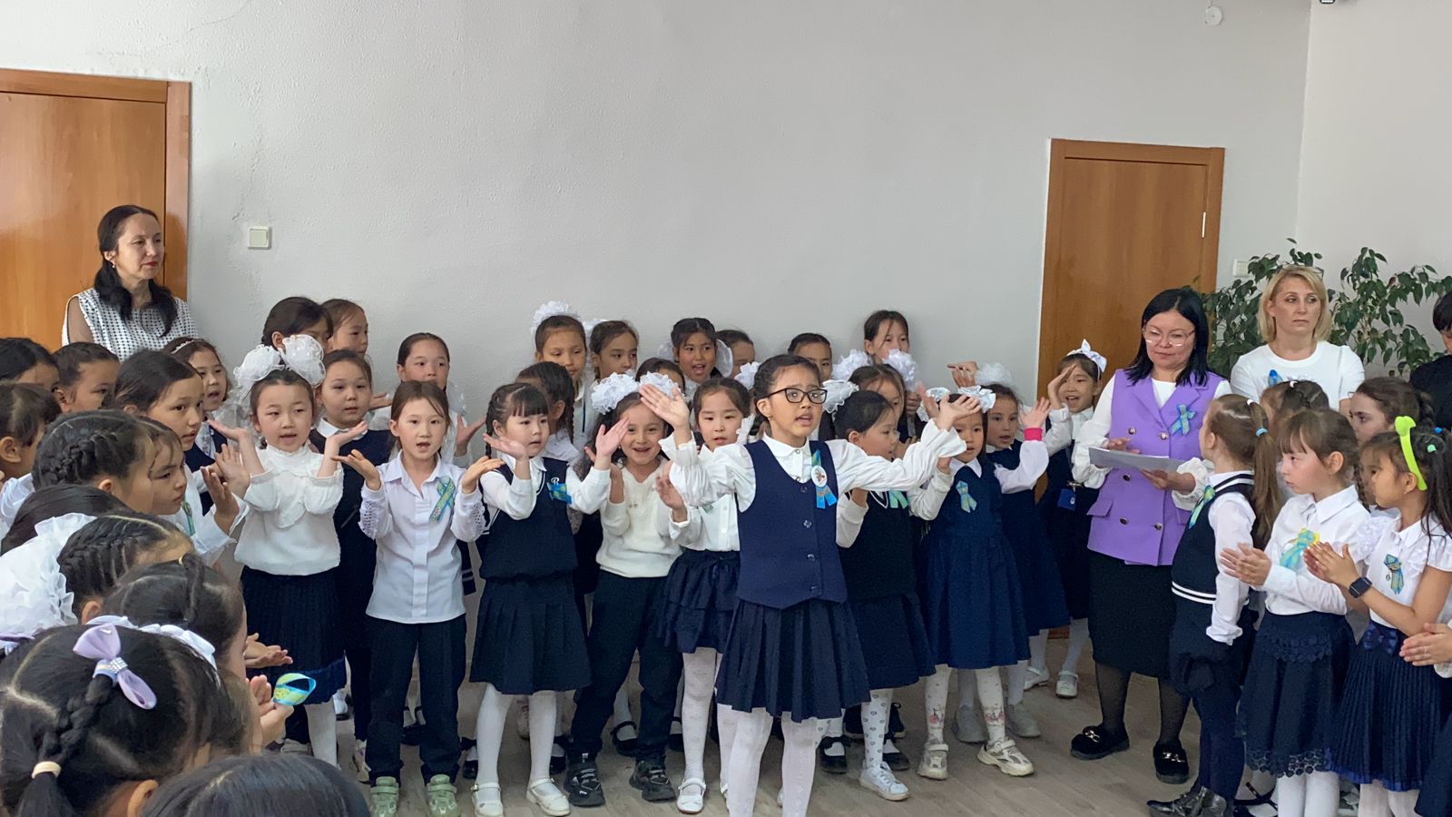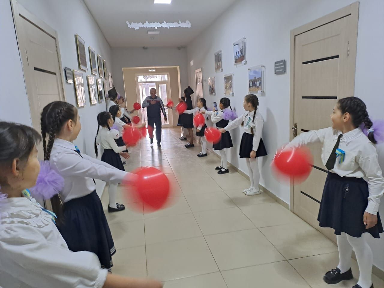 орай гимназия ұжымы ер азаматтарды таңертеңгілік мерекелік әуенмен құттықтап, қарсы алды