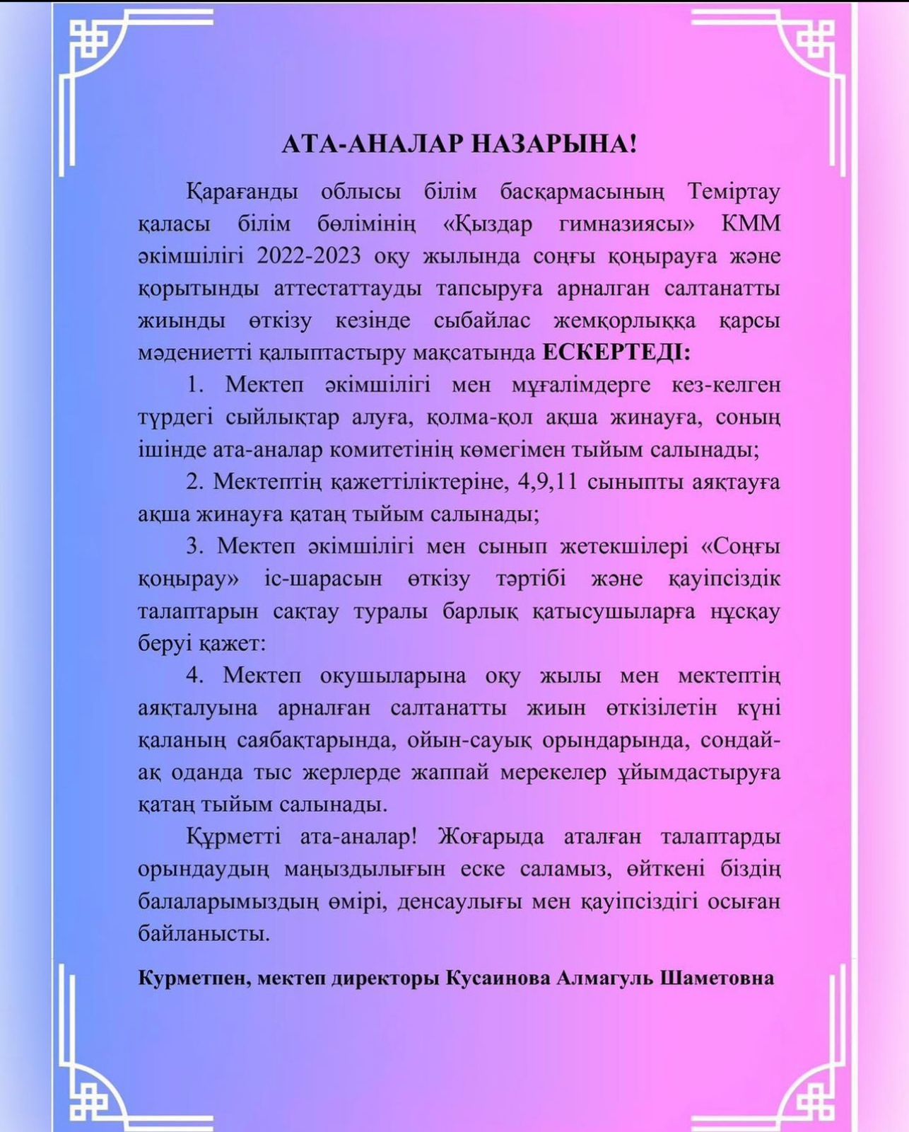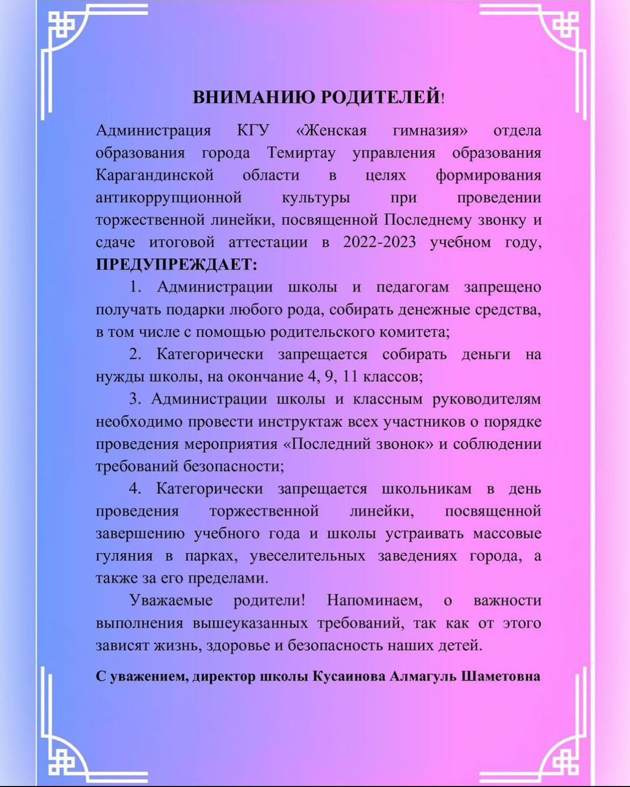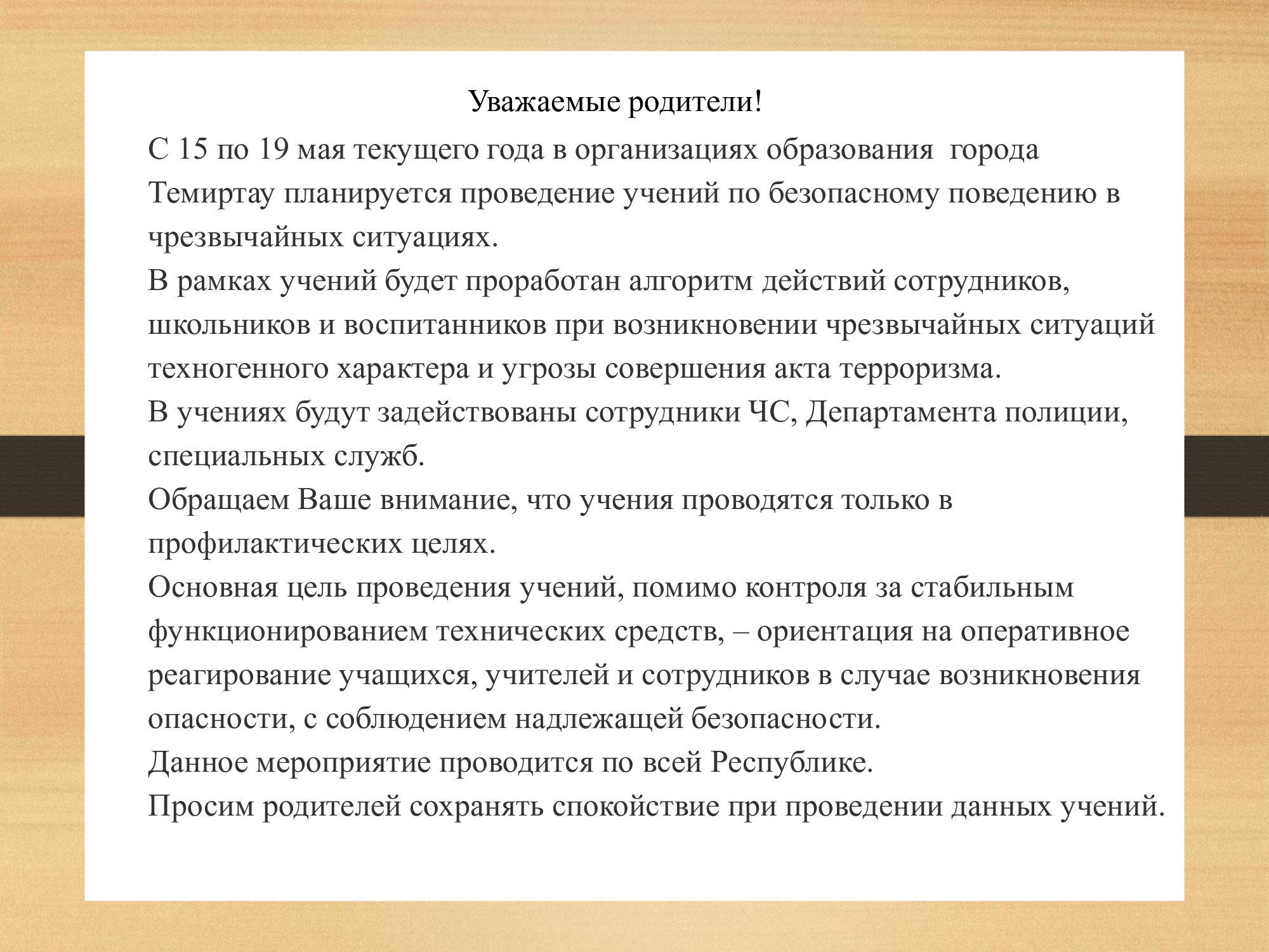 Құрметті ата-аналар! Үстіміздегі жылдың 15-19 мамыр аралығында Теміртау қаласының