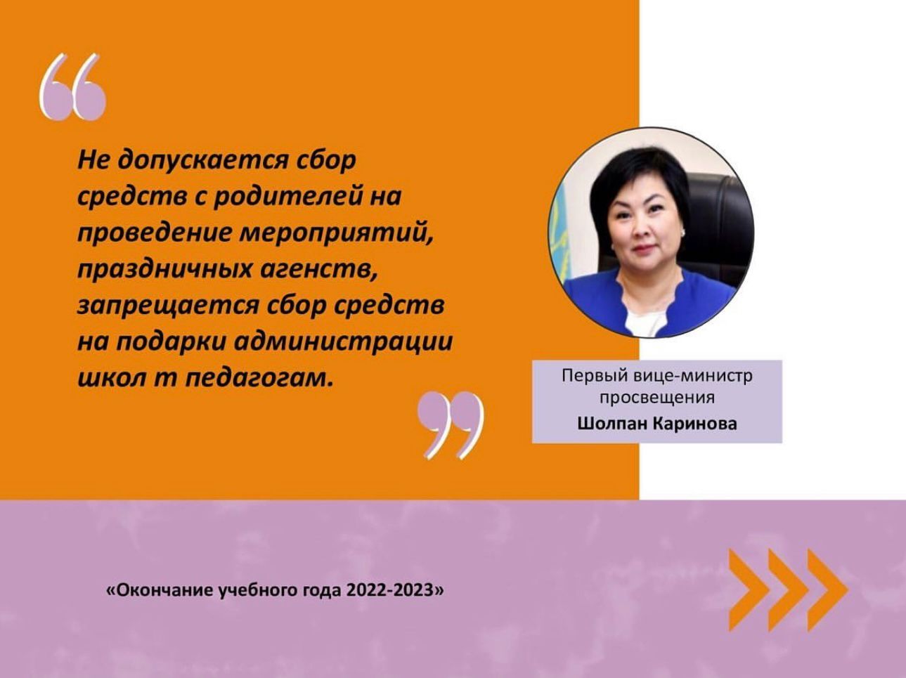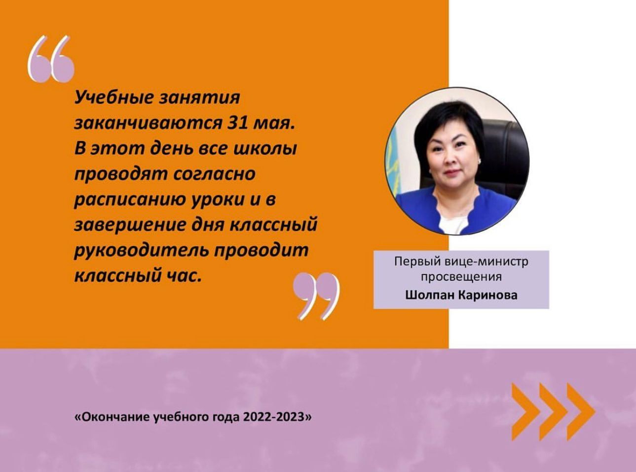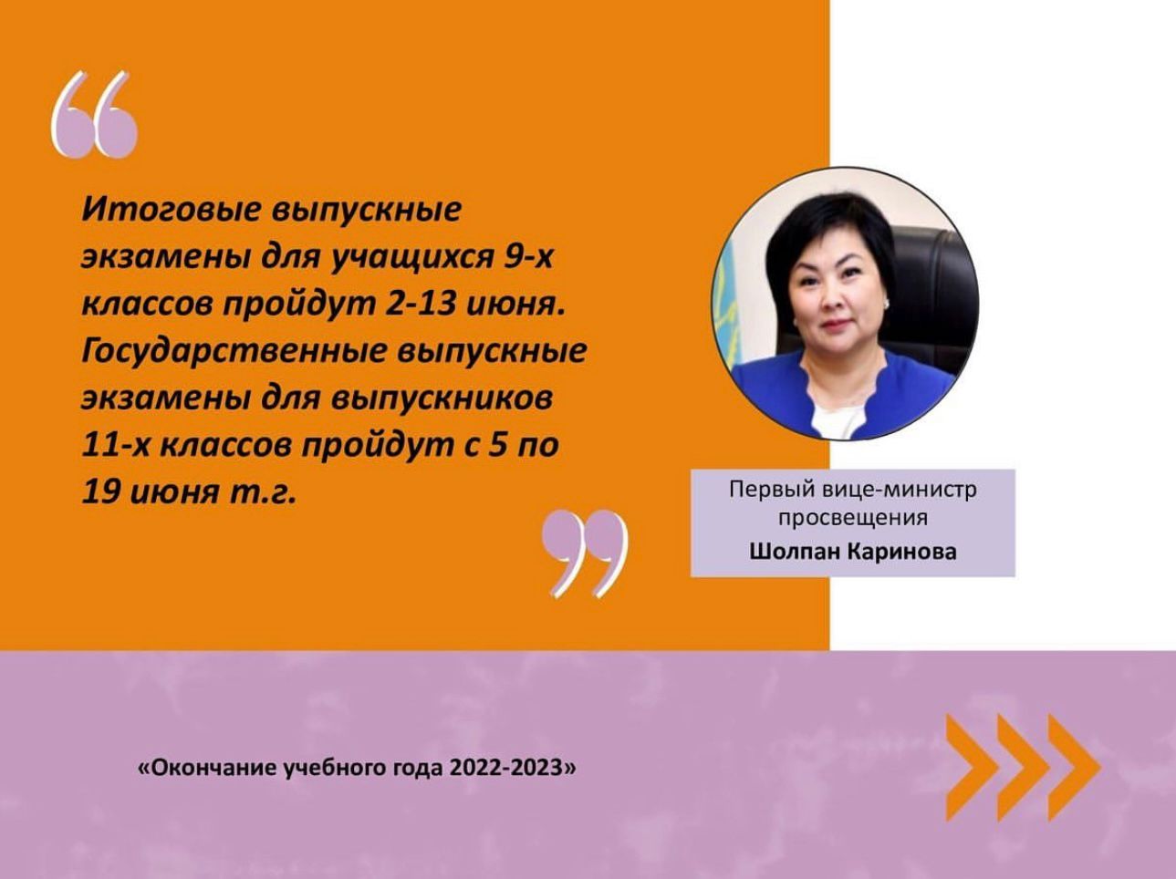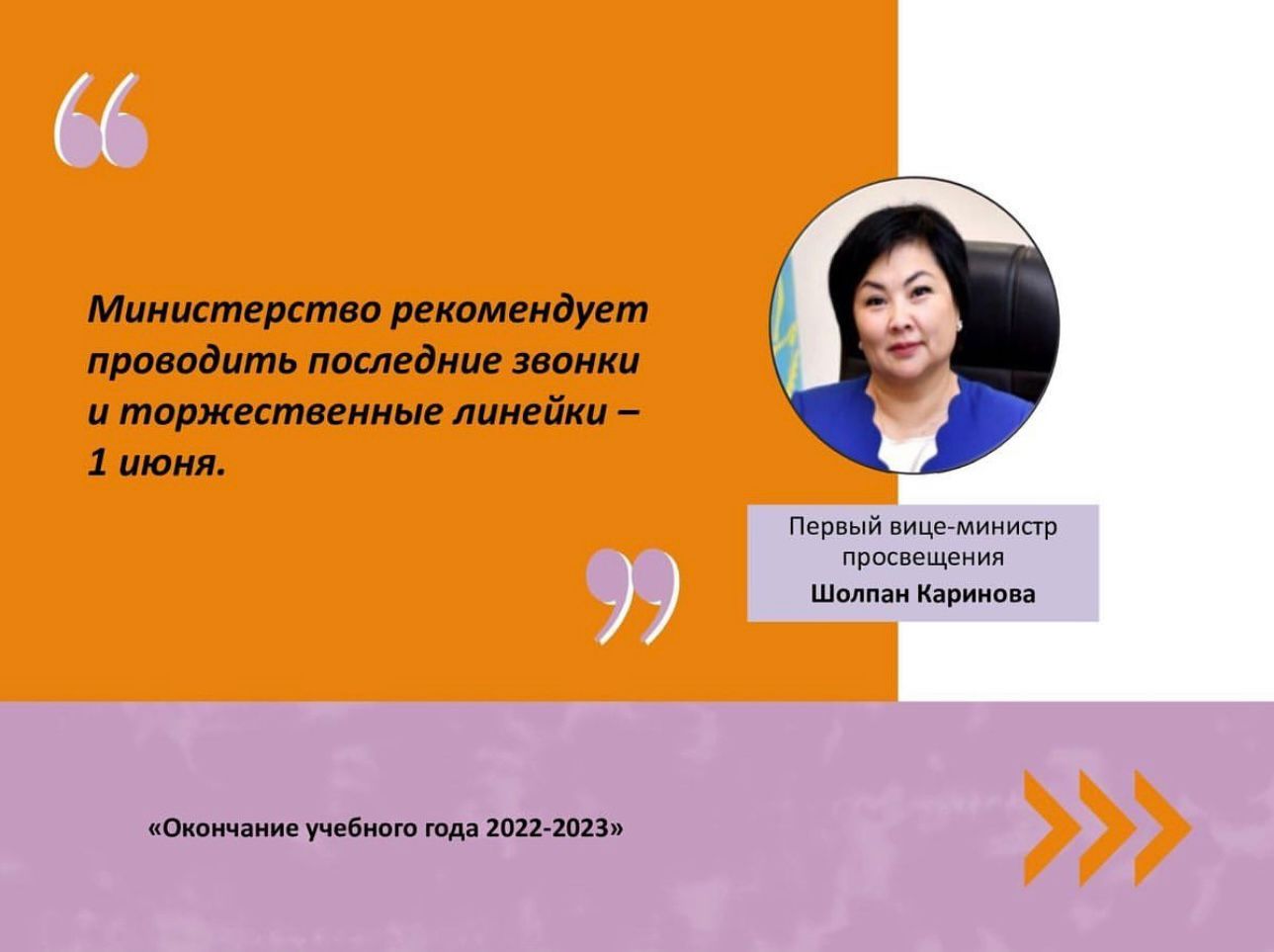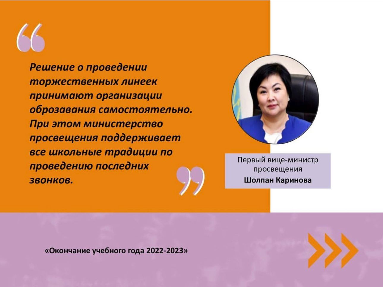 Білім бірінші вице-министрі Шолпан Каринова 2022-2023 оқу жылының аяқталуы туралы