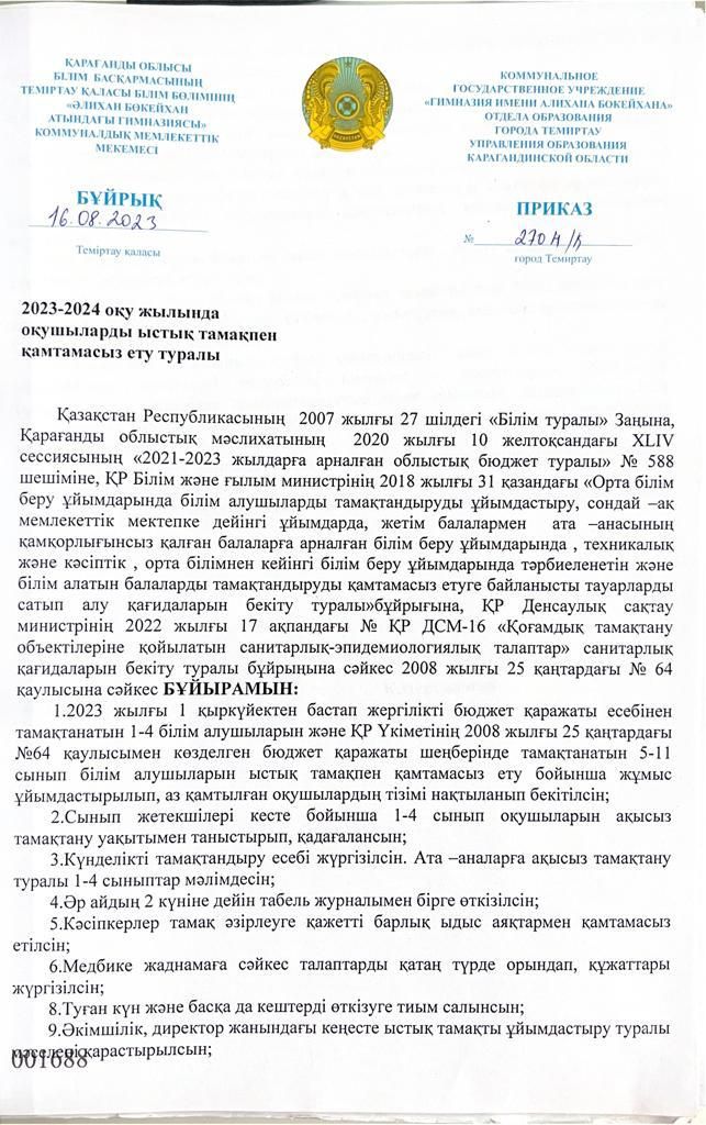 "Әлихан Бөкейхан атындағы гимназиясы"КММ су режимі!