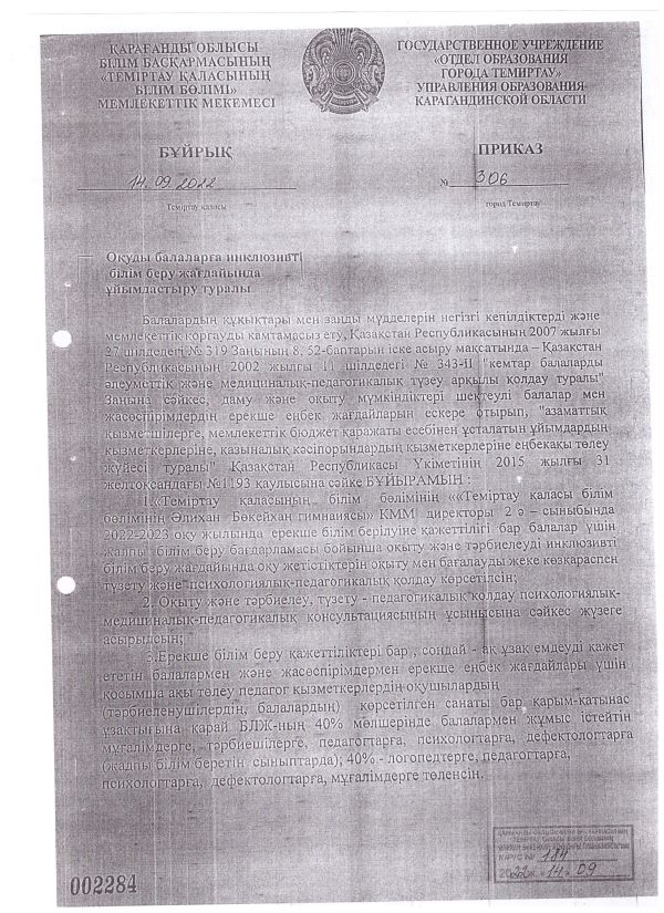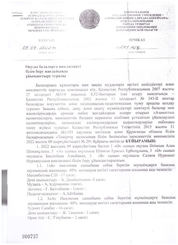 «Алихан Бөкейхан гимназиясы»КММ инклюзияоқуына сұраныс: