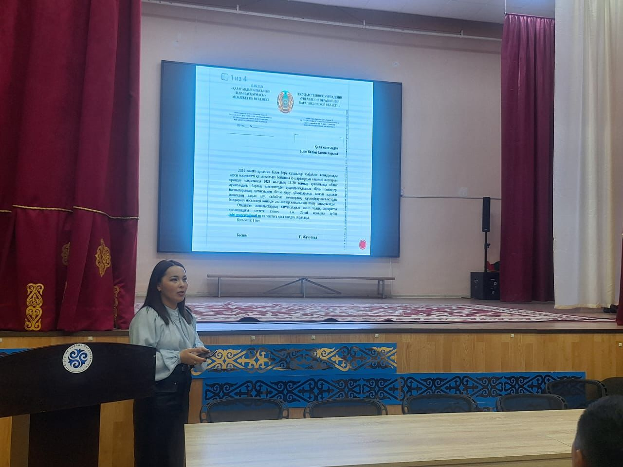 2024 жылдың 19 сәуір күні ата-аналар жиналысында "Қауіпсіз интернет" тақырыбында ақпарат берілді.
