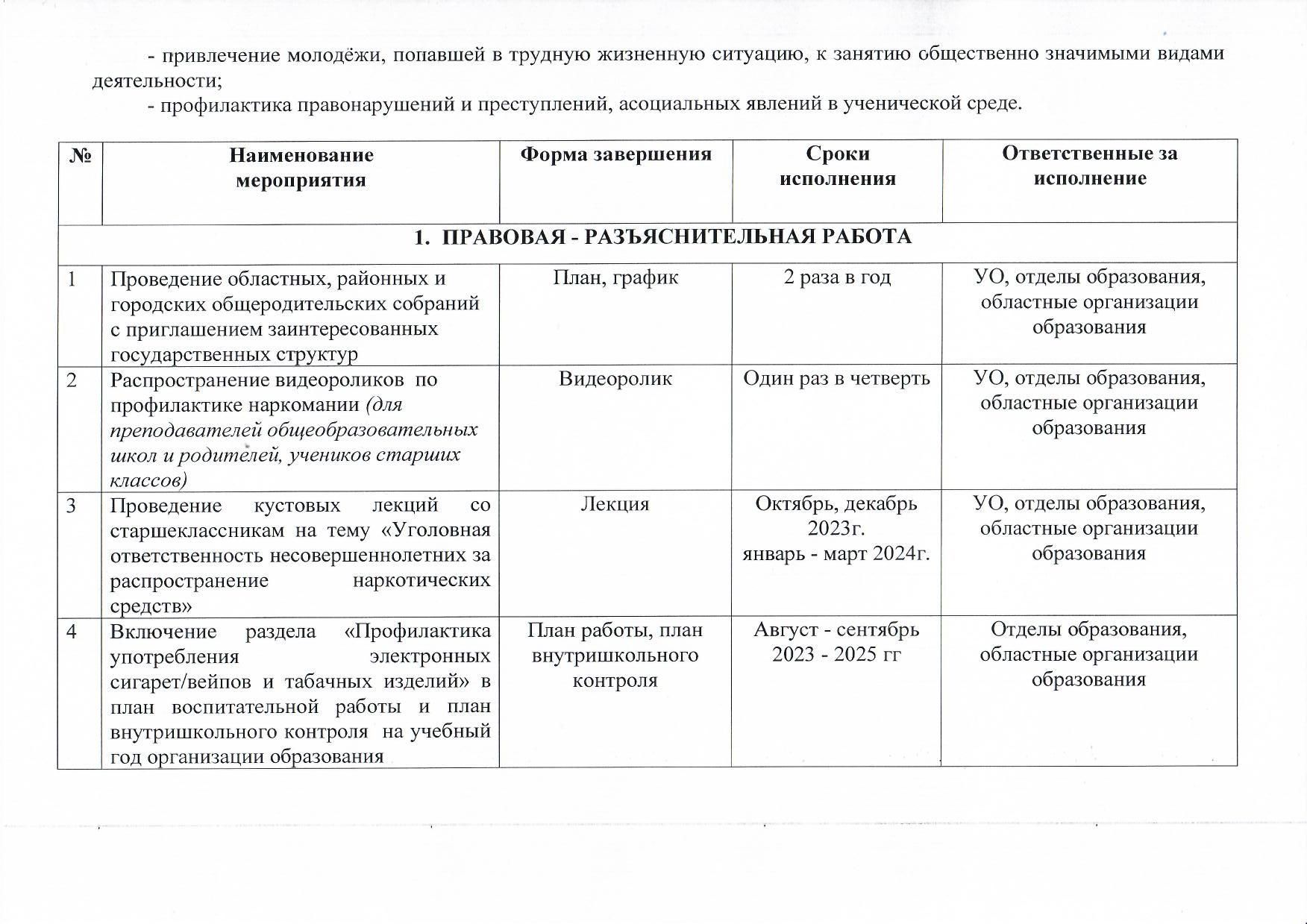 Есірткі, ішімдік пен темекінің алдын алу 2023-2025 кешенді жоспары