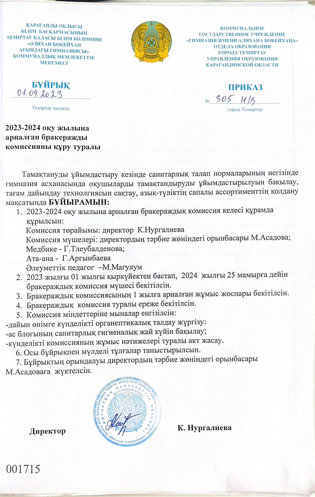 2023-2024 оқу жылындағы бракераждық комиссия құрамы.