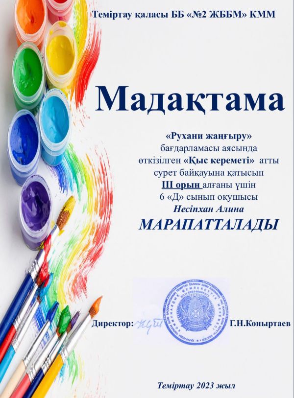 Мектебімізде 2-6 сынып оқушылары арасында “Қыс кереметі” атты сурет байқауы өтті. Байқауға оқушыларымыз белсене қатысты. Балалардың табиғатты тамашалап, қыс қызықтарын айтып беруге, суре…