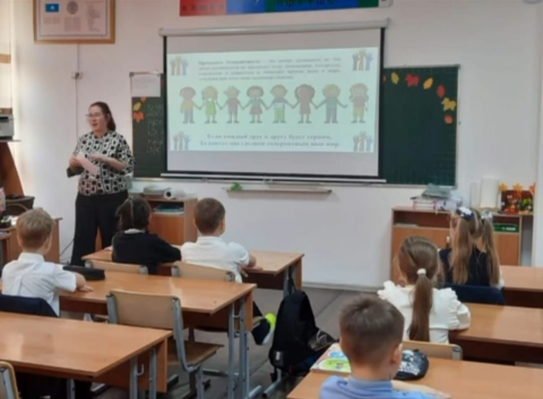 Дүниежүзілік балалар күніне арналған республикалық онкүндік аясында "№ 7 жалпы білім беретін мектеп" КММ-де 1-5 сынып оқушылары арасында "Бала құқықтары" тақырыбында сынып сағатт…
