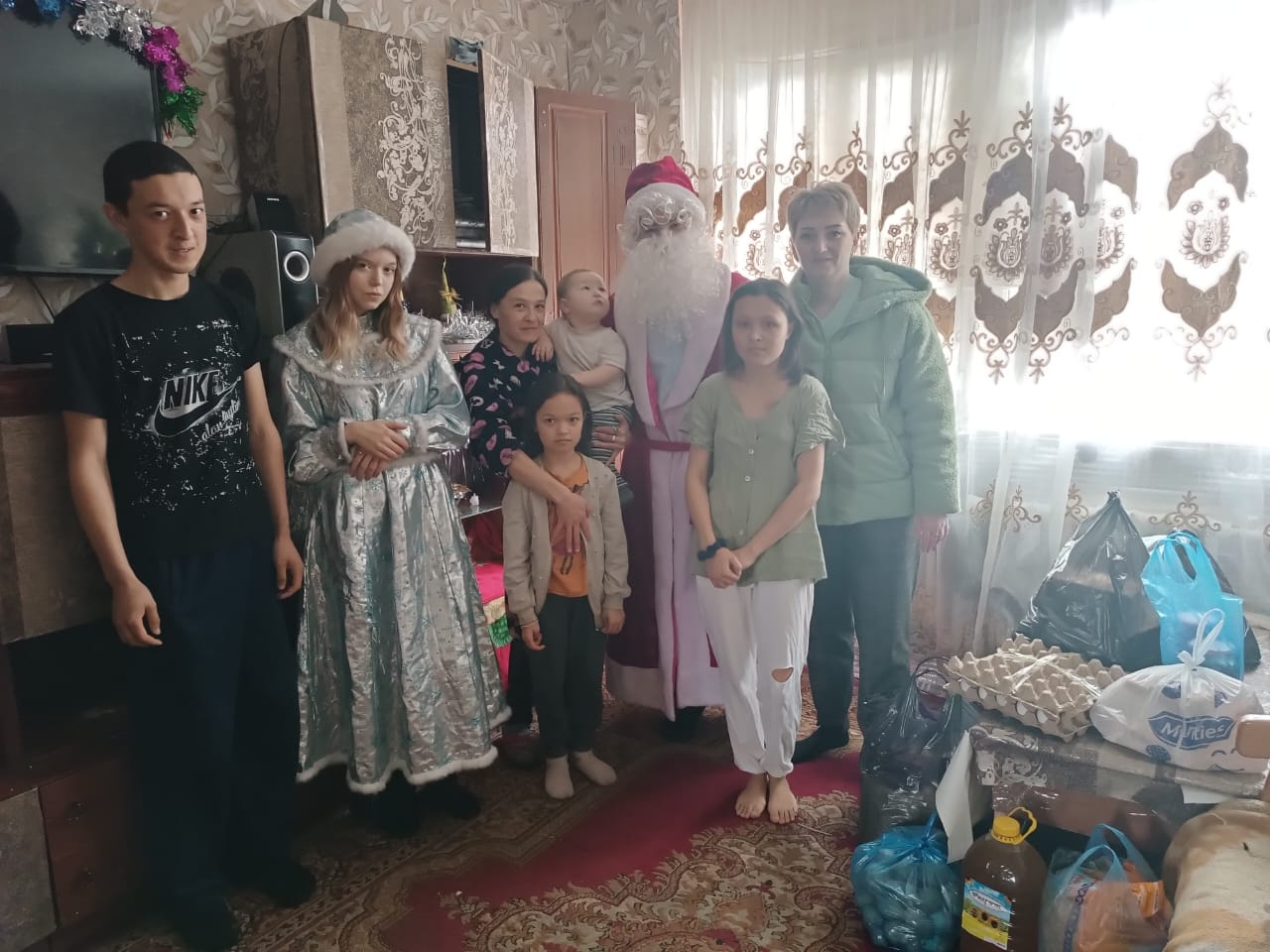"Жаңа жыл" мерекесі қарсаңында мектептің педагогикалық құрамы мұқтаж отбасына қажетті азық-түлік өнімдері, жемістер түрінде көмек көрсетті .