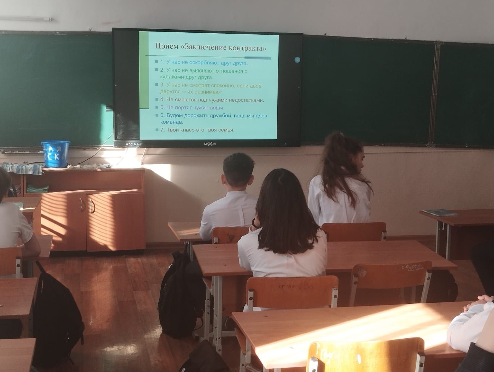 Бүгін сынып сағаттарда терроризмге қарсы қауіпсіздік бойынша бейнероликтер көрсетілді.
