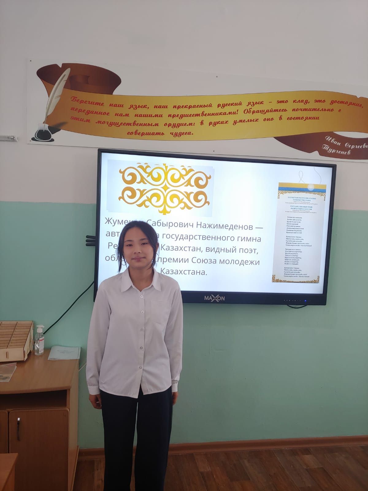 Қазақстан Республикасының танымал композиторы және мемлекеттік әнұран музыкасының авторы Әбілахат Еспаевтың туғанына 100 жыл толуына орай 7-сыныпта тақырыптық сабақ өтті.