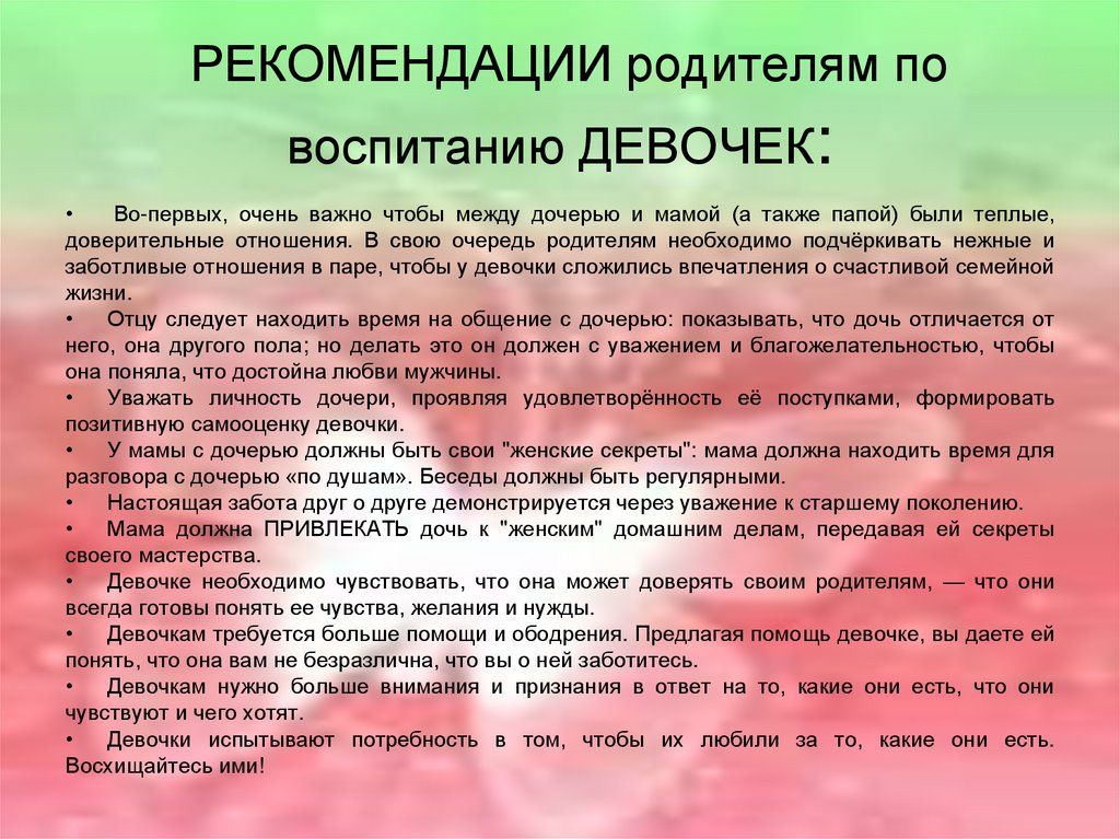 Ұл және қыз тәрбиесі бойынша ата-аналарға ұсыныстар