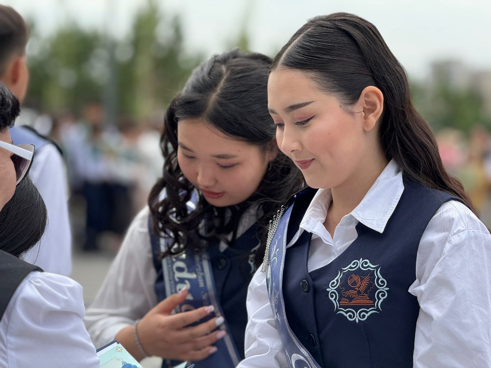 Қарағанды қаласындағы келешек мектептердің бірінде аттестат тапсыру сәттері: салтанатты әрі жылы атмосферада түлектер мектепті аяқтағаны туралы аттестаттарын алды. Ұстаздар, ата-аналар мен түлектерд…
