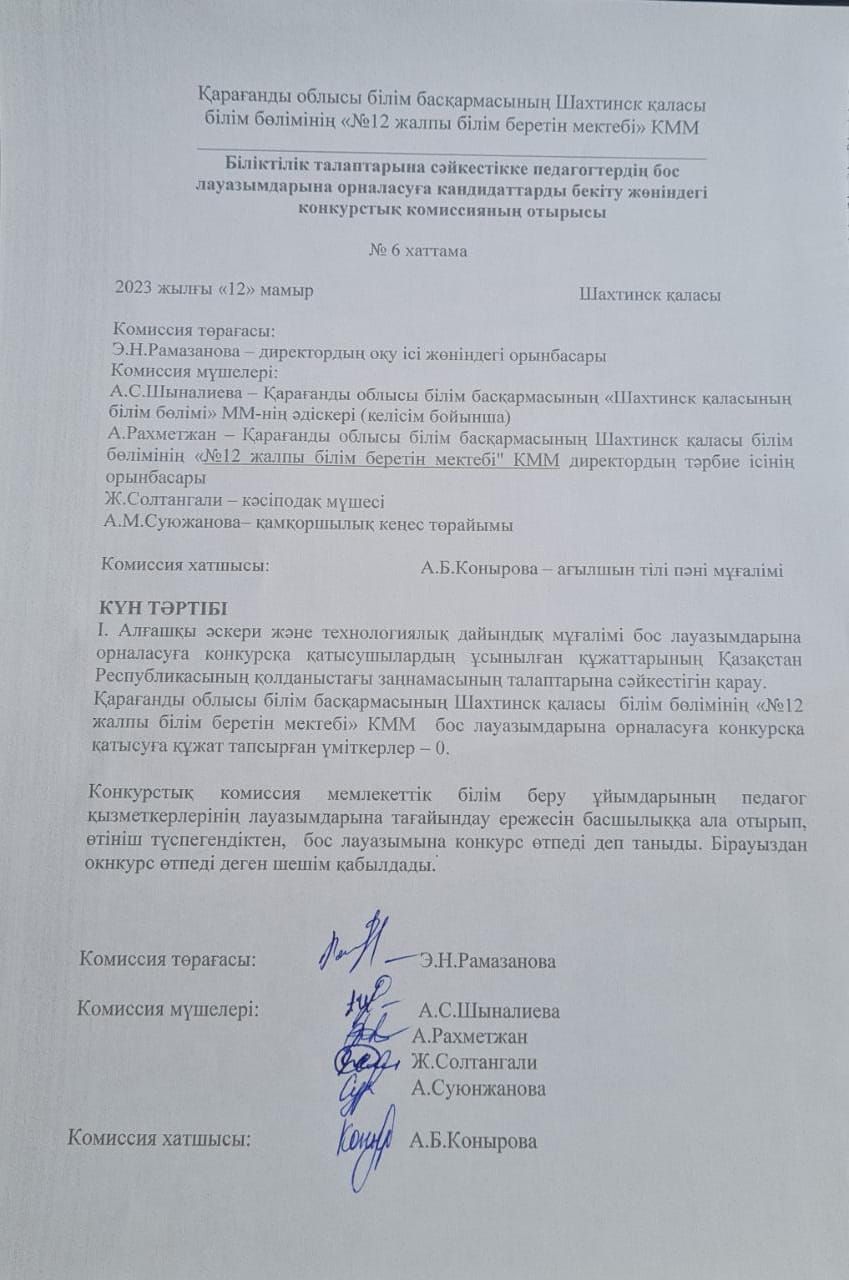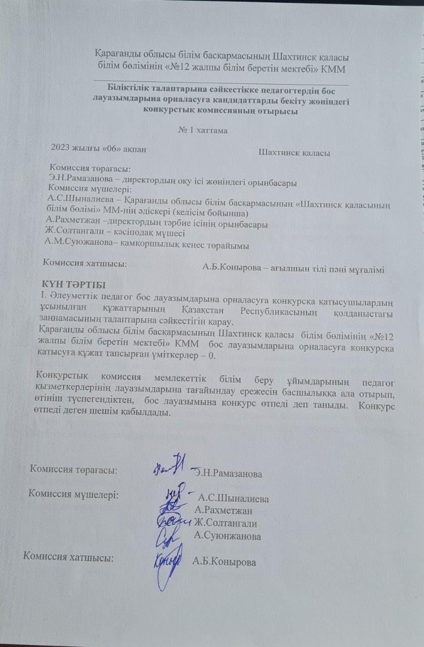 бос лауазымына орналасуға конкурс туралы