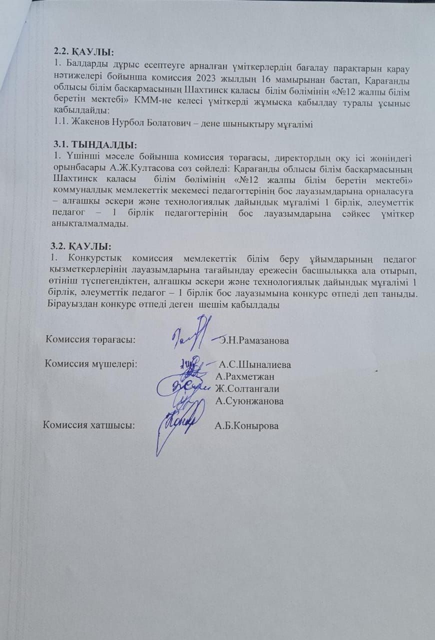 Жұмысқа қабылдау бойынша конкурстың қорытындысы