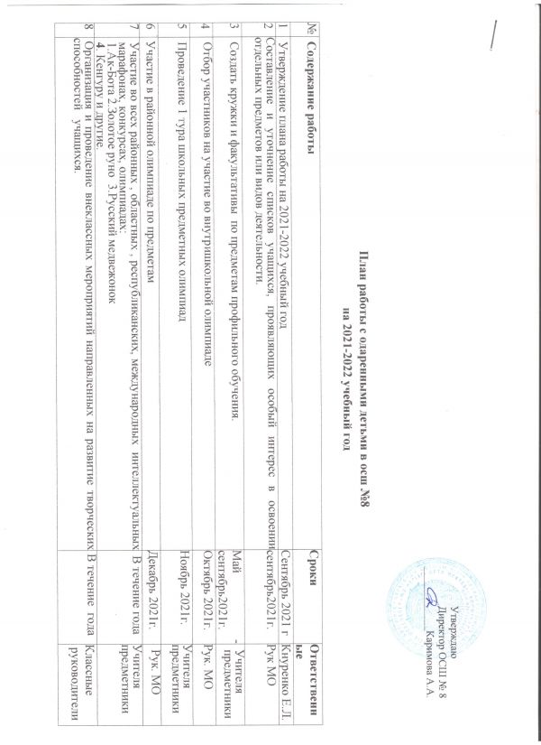 Отчёт о проделанной работе с мотивированными учащимися в ОСШ № 8 за 2021-2022 учебный год