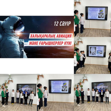 Абай Құнанбаев атындағы №5 мектеп-гимназиясында Ғарышкерлер күніне қарсы 3 «Б» сыныбында «Ғарыштағы алғашқы адам» атты сынып сағатты өтті.
