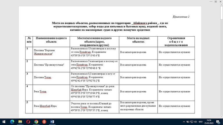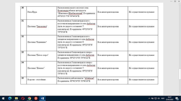 Абай ауданы маңында суға түсуге рұқсат етілген орындар!