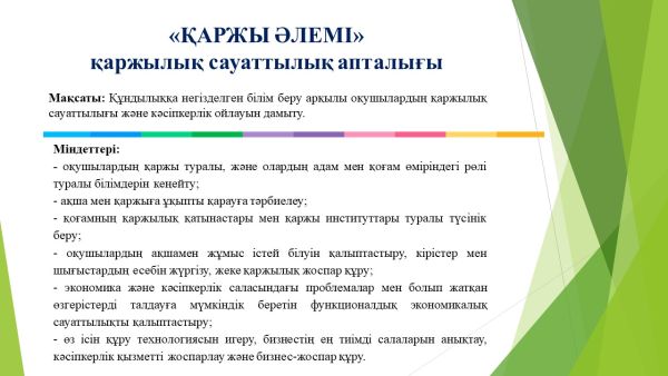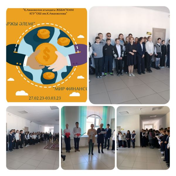 27 февраля 2023 года в КГУ «ОШ им.К.Аманжолова» стартовала Неделя финансовой грамотности «ҚАРЖЫ ӘЛЕМІ» - «МИР ФИНАНСОВ».