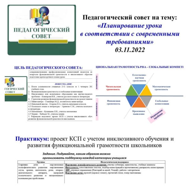 3 ноября 2022 года в КГУ «Дубовская общеобразовательная школа» проведен педагогический совет на тему: «Планирование урока в соответствии с современными требованиями»…