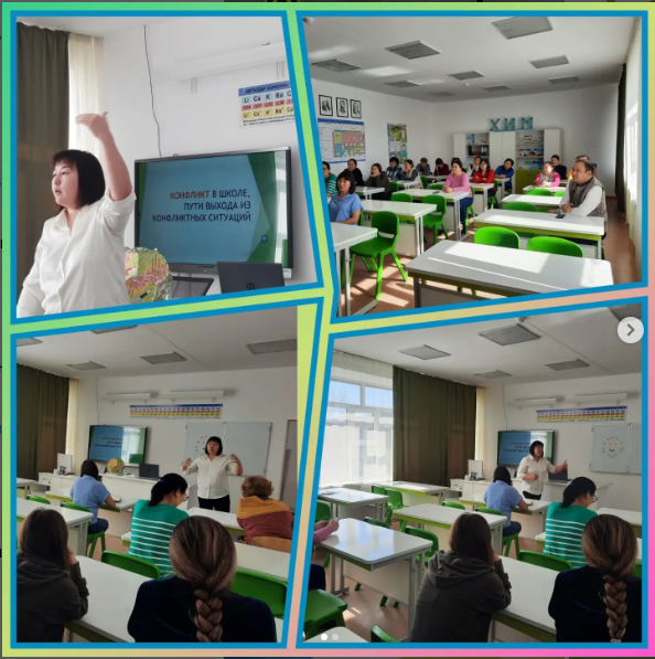 26 марта 2024 года Копбаева М.Е., школьный психолог КГУ «Общеобразовательная школа имени К.Аманжолова» провела школьный семинар для педагогов на тему: «Конфликт в школе. Пути вых…