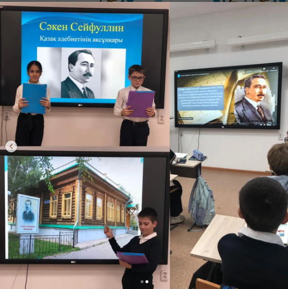“ХХІ ғасыр – сауатты ұрпақ ғасыры”атты оқу сауаттылығы апталығы аясында 17.01.2024 күні Сәкен Сейфуллиннің 130 жылдығына орай 5-7 сыныптарымен «Қазақ әдебиетінің ақсұңқары&ra…