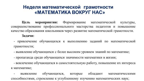 23 января 2023 года в КГУ «ОШ им.К.Аманжолова» стартовала неделя математической грамотности «Математика вокруг нас». В честь начала недели был оформлен предметный стенд. Пров…