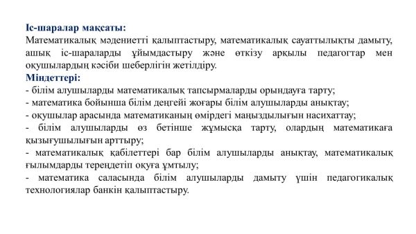 24 января 2023 года в КГУ «ОШ им.К.Аманжолова» в рамках недели математической грамотности «Математика вокруг нас» учителями математики А.Т. Жанаевой и Ж.Н.Бабайбековой был пр…