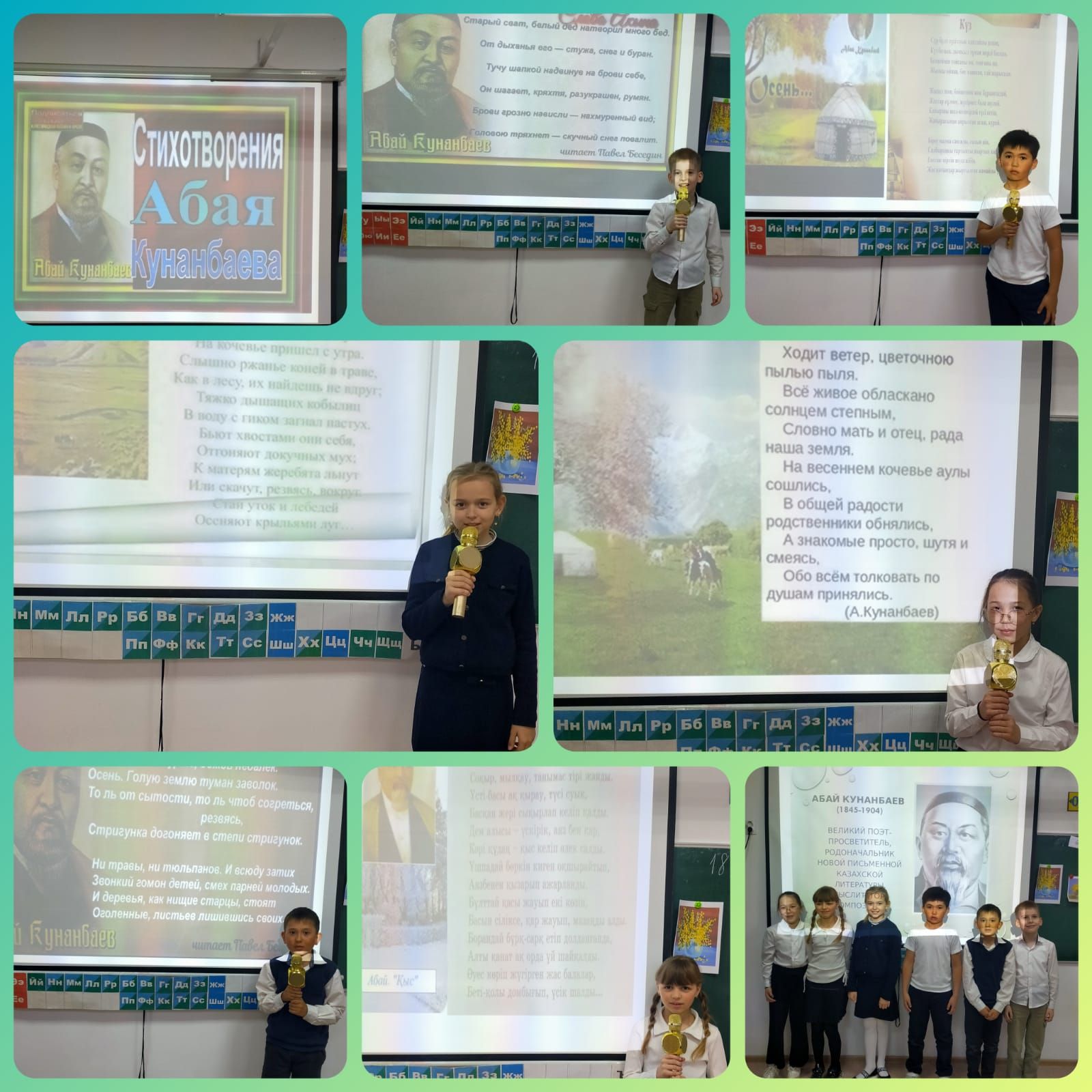 шығармашылығы бойынша өлеңдер байқауын өткізді. /стихотворения по творчеству писателей-юбиляров.