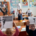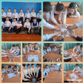 Учащиеся 1"Б" класса участвовали в выставке рисунков «Мир один на всех» и приняли участие во флешмобе «Зажги синим!»
