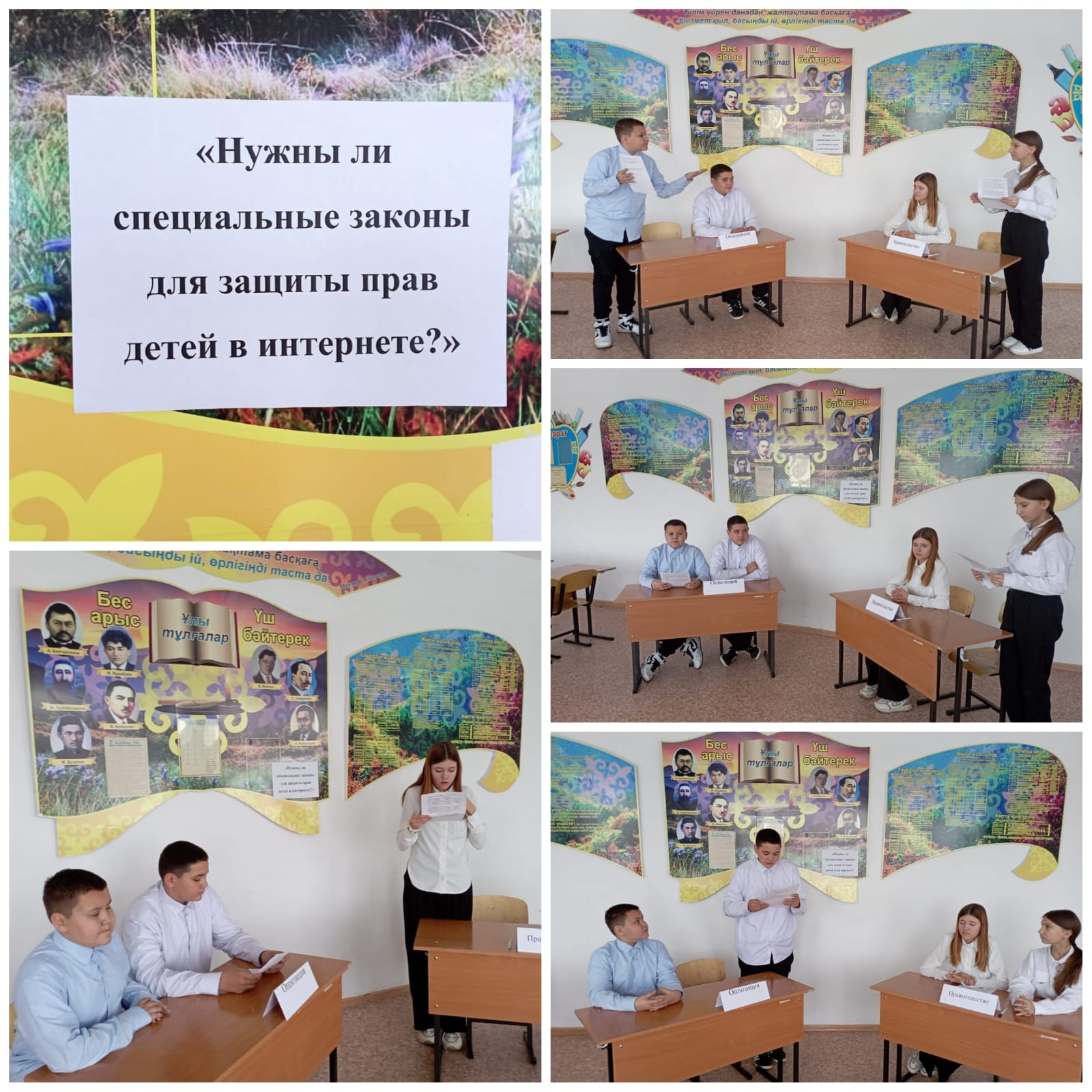 2024 жылғы 12 қарашада "Мичурин негізгі орта мектебі" КММ-де "Қажет пе арнайы заңдар интернеттегі Балалардың құқықтарын қорғау үшін?"қабылдаудың 35 жылдығын, ратификаци…
