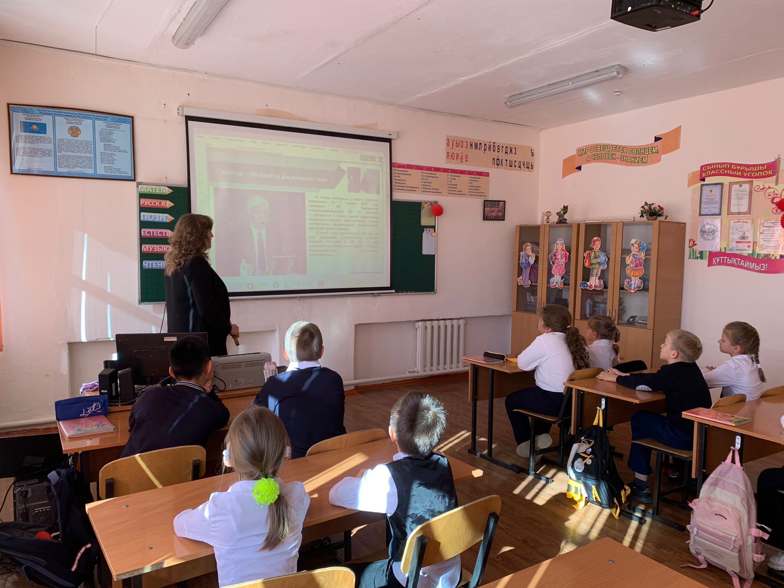 14.10. 2024 жылы "Мичурин НОМ" КММ 1-9 сынып оқушыларымен “Тәуелсіздік және патриотизм" айының құндылығына сәйкес Ұлы Отан соғысының батырларына арналған "Рахымжан Қошқарба…