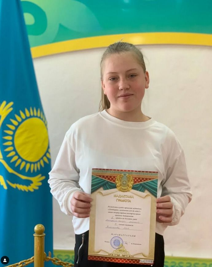 Лия Власкова, "Мичурин негізгі орта мектебі" КММ 7-сынып оқушысы Қазақстан Республикасы күніне арналған "Жырым саған туған жер" ән байқауында 2-орынға ие болды