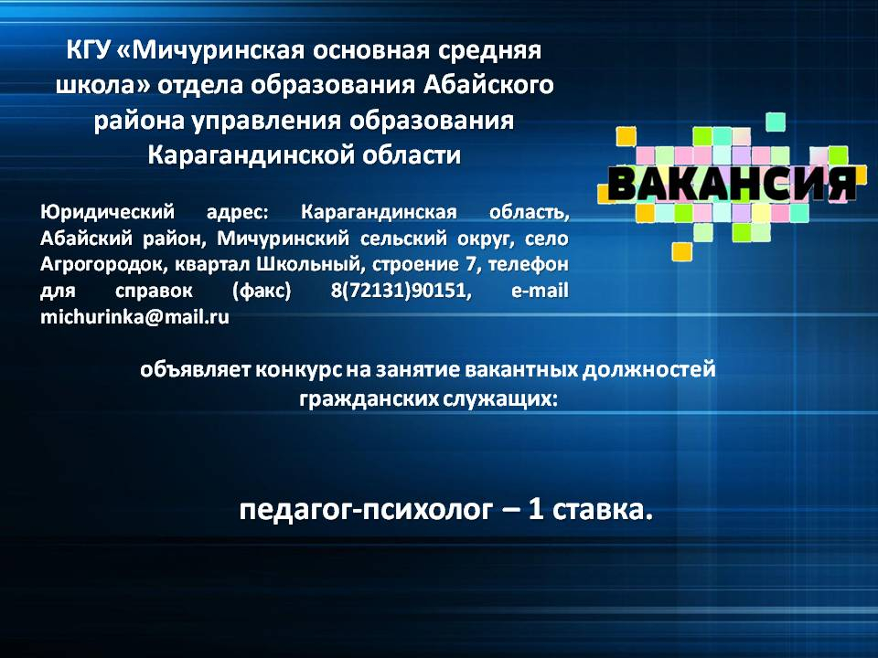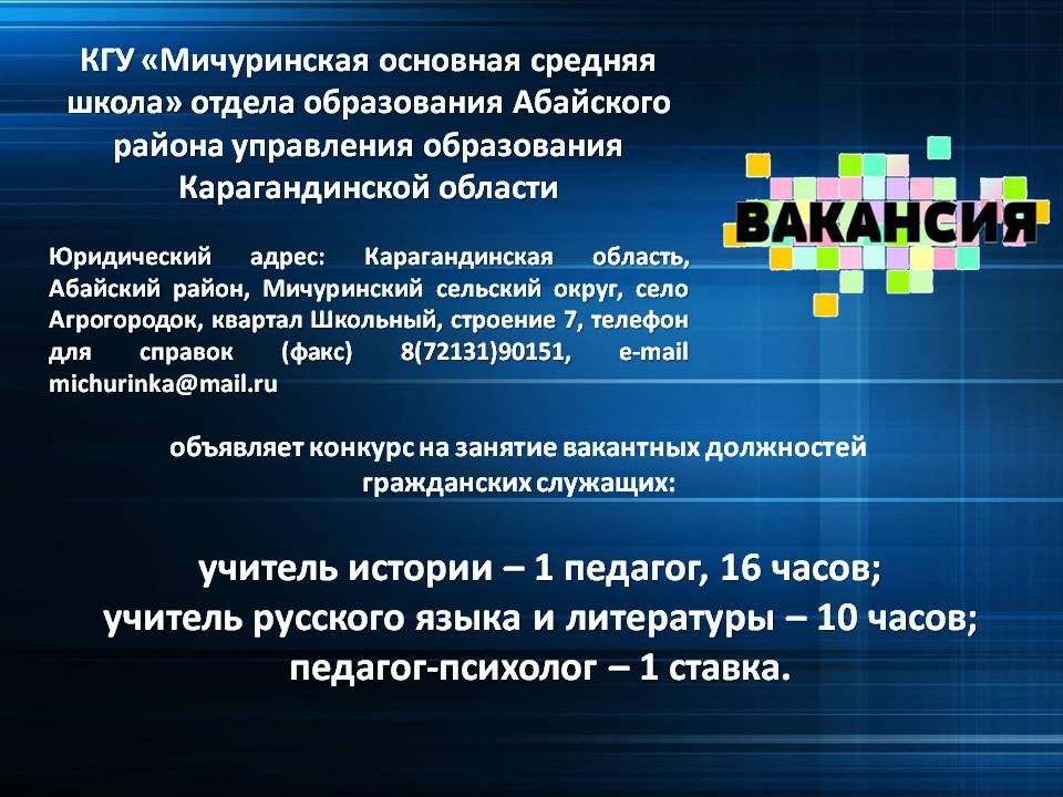 Итоги конкурса на вакансию в Мичуринской ОСШ