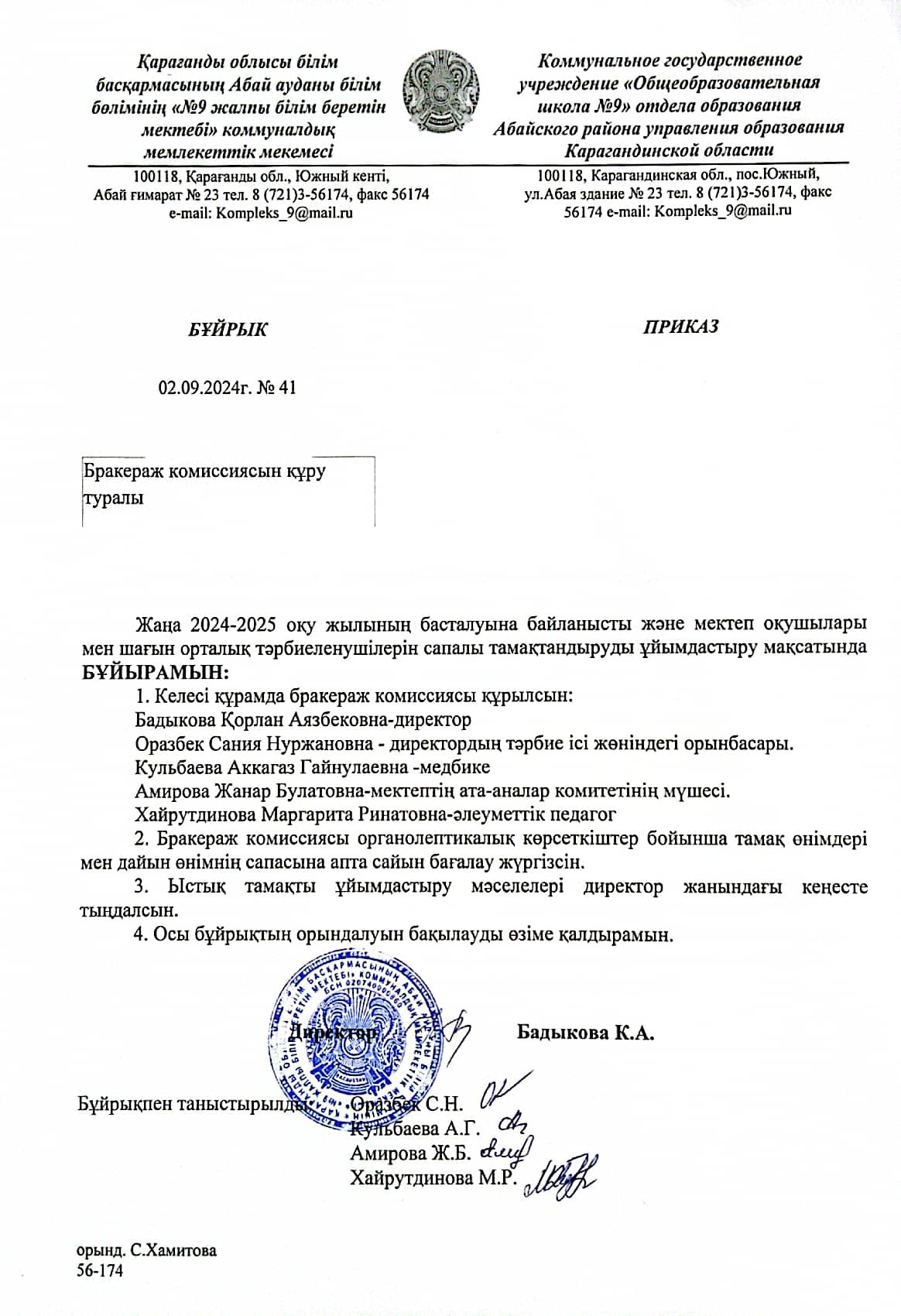 9 сентября, в рамках работы бракеражной комиссии, была проверена работа школьной столовой. В ходе проверки был составлен акт. Арендатор и работники столовой были ознакомлены с выводами и замечан…