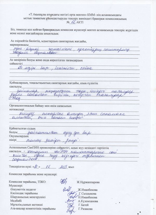 "Т.Ақышұлы атындағы негізгі орта мектеп" КММ -де мектеп асханасында 1-4 сынып аралығында 22 оқушы, және 5-9 сынып арасында жекеленген…