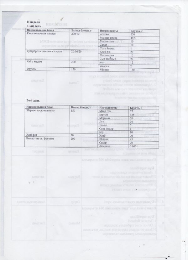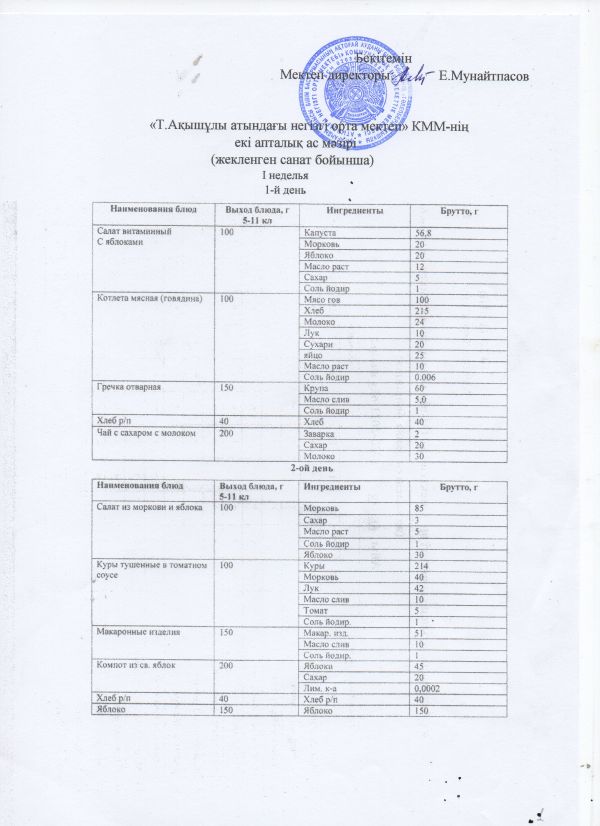 Жекеленген санаттағы оқушылардың екі жетілік ас мәзірі