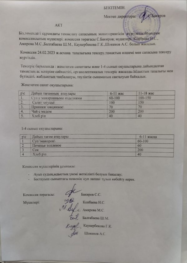Мектептегі тамақтану сапасына мониторинг жүргізу