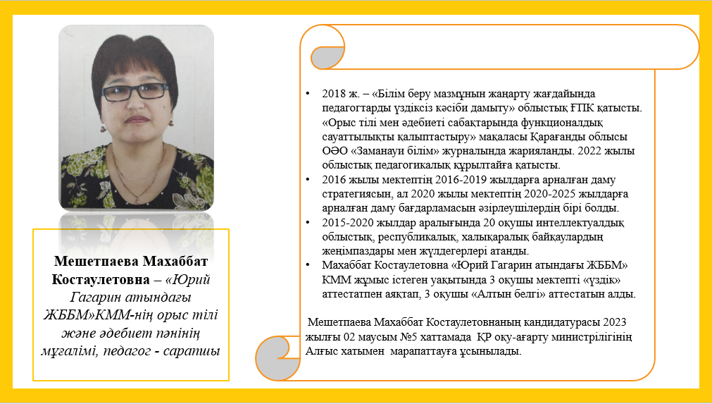 Коммунальное государственное учреждение «Общеобразовательная школа имени Юрия Гагарина» отдела образования Бухар-Жырауского района, управления образования Карагандинской области…