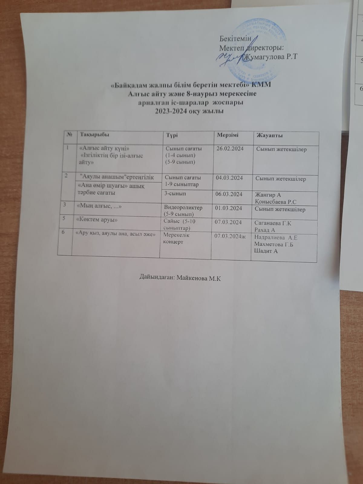 Алғыс айту және 8-наурыз мерекесіне арналған іс-шаралар жоспары
