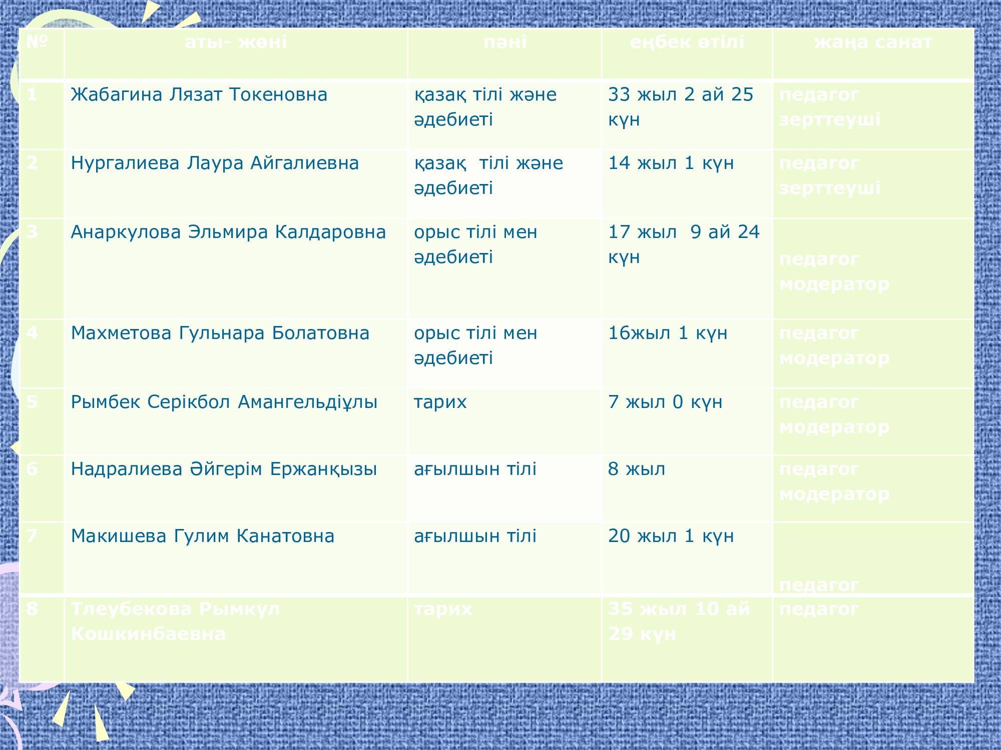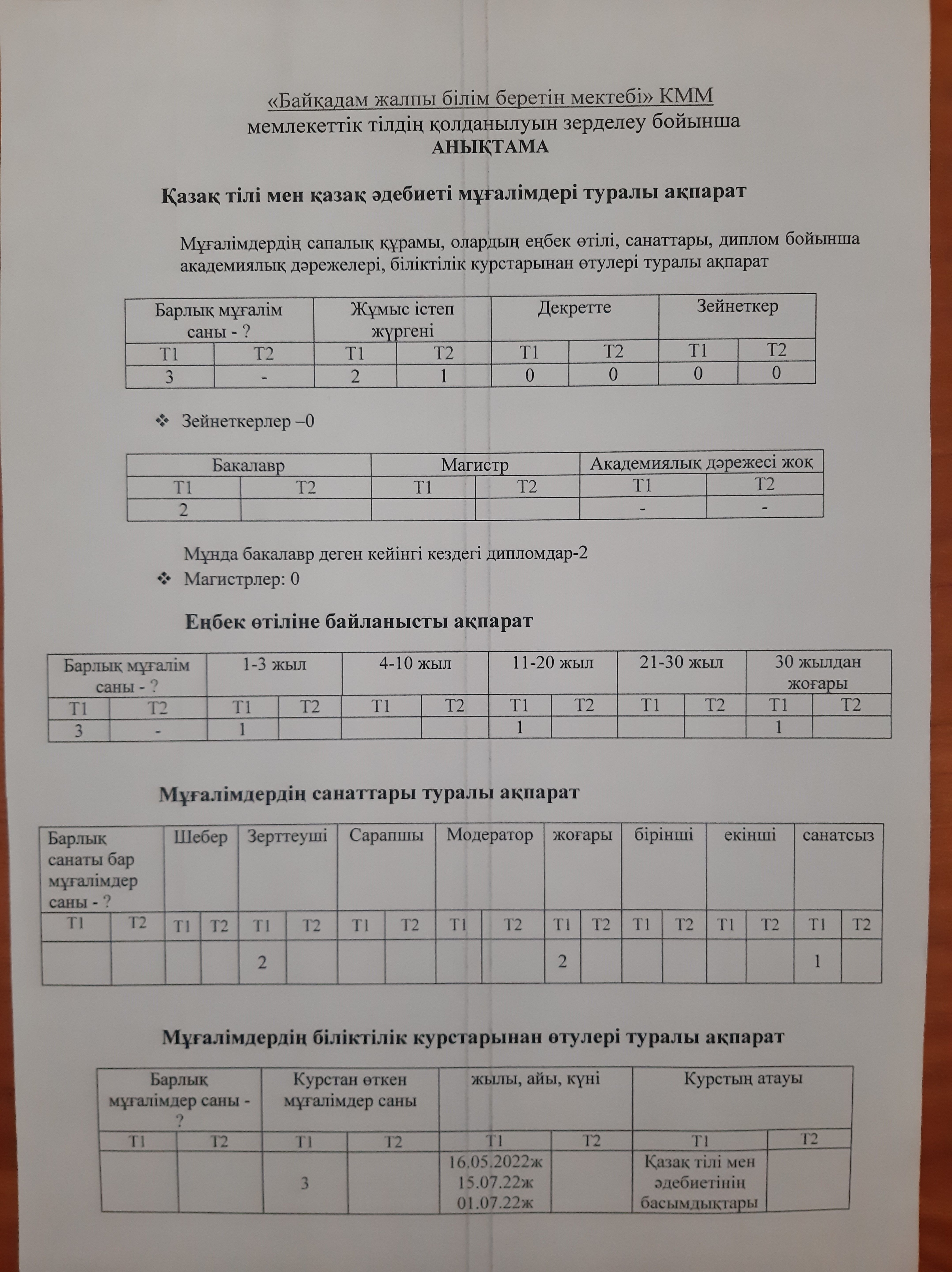 Қазақ тілі мен қазақ әдебиеті мұғалімдері туралы ақпарат